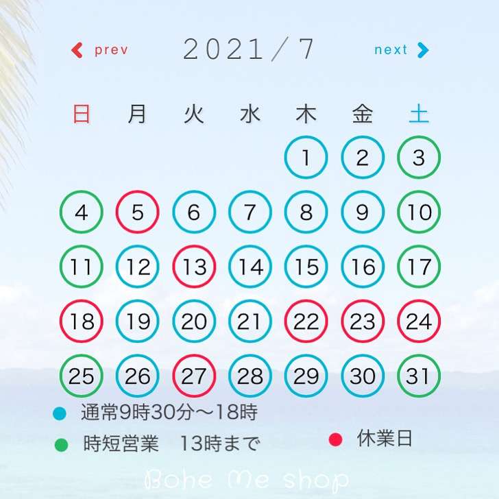 7月営業日【Bohe Me shop】