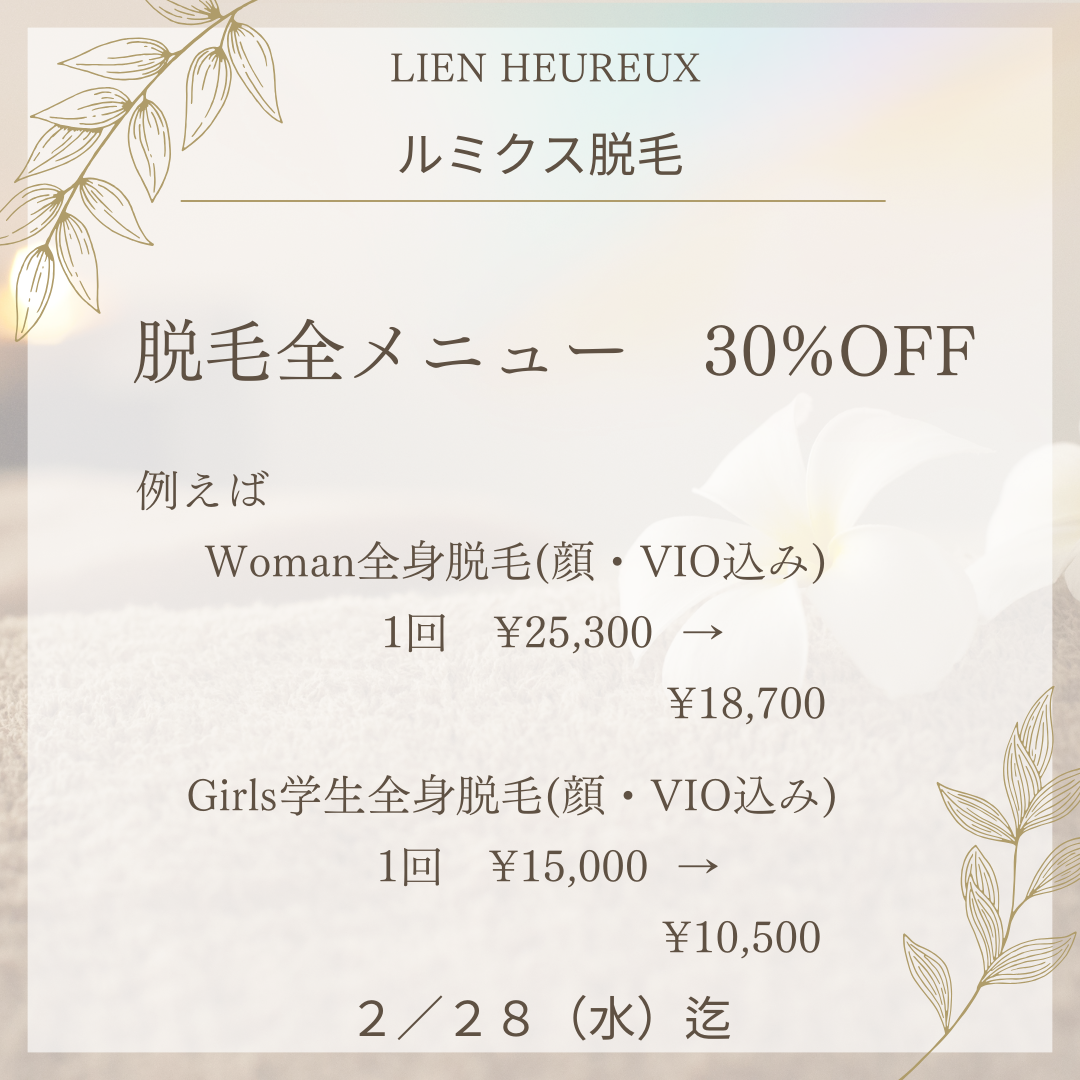 新店舗記念第2弾『ルミクス脱毛キャンペーン』【Bohe Me shop】